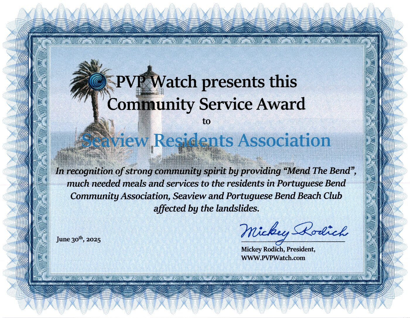 PV Rotary and Community’s Child Coordination of October Dinners at Ladera Linda Community Center – MEND THE BEND